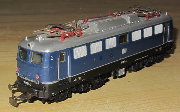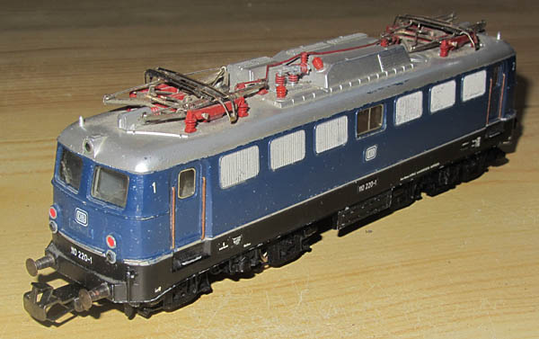 E10 238, bekam dann neben der neuen Betriebsnummer 110 220-1 auch noch einen DB Keks auf die blaue Front. Das gab es auch beim Vorbild und mit kleinem Aufwand war eine weitere Version entstanden.