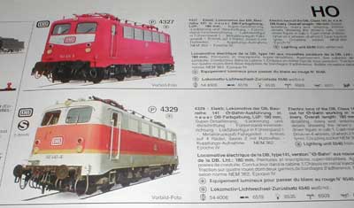 Im Neuheitenprospekt 1999 wurde erneut die 141 in einer Startpackung angeboten. Diesmal war es die 141 441-6 in S-Bahn Lackierung, die in dem Duo-Start-Set 6372 zusammen mit 3 Silberlingen angeboten wurde. Dazu kam noch die Dampflok der Baureihe 80 mit drei Güterwagen, Trafo, Gleisen und zwei Weichen. Im Katalog 2000/2001 wurde erstmals nicht mehr auf die veränderten Betriebsnummern der FMZ-Loks hingewiesen. Ich vermute, dass ab da diese Modelle mit den Betriebsnummern der normalen Gleichstromausführungen angeboten wurden, kann dies bisher aber nicht mit letzter Sicherheit behaupten. Im Folgekatalog 2001/2002 fehlte dann die grüne 141 237-8 in der Gleichstromversion. Als Neuheit 2002 war ein verändertes Duo-Start-Set zu finden, welches nun die orientrote 141 414-3 beinhaltete. Bis auf das veränderte Wagenmaterial (die Silberlinge waren jetzt mintgrün, die Güterwagen verändert), unterschied es sich nicht vom nun entfallenen Startset von 1999. Im Jahr 2002/2003 war auch die grüne 141 237-8 in der Wechselstromversion aus dem Katalog entfallen, so dass es von dieser Variante nur noch die FMZ-Lok gab. Die Versionen in beige/türkiser, orientroter und orange/grauer Farbgebung waren in diesem Katalog noch in den bereits genannten Varianten zu sehen. Auch im aktuellen Katalog 2003/2004 hat sich an diesem Angebot nichts geändert. |
