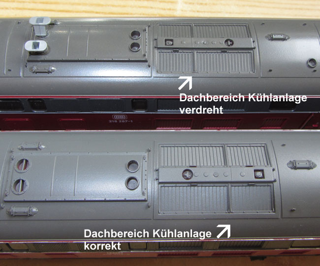 nachvollziehbar hat Fleischmann aber bisher fast immer die Vorbilder richtig nachgebildet. Nur bei der 218 498-4 sollten die Hutzen versetzt angeordnet sein, da hier das Vorbild während seiner Lackierungszeit in