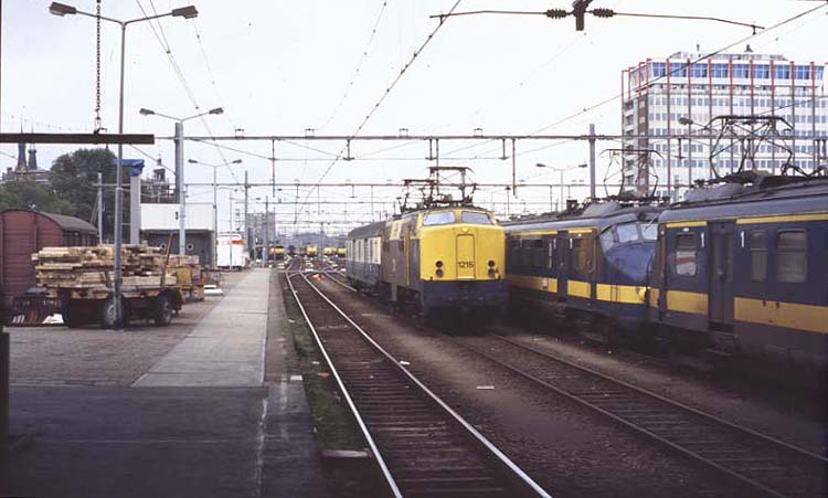 Ein NS-Klassiker, die 1215, mit einem DB-Postwagen am 05.08.1985 in Amsterdam.