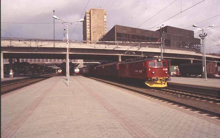 Oslo C. am 09.08.1985, vor einer heraufziehenden Wolkenwand sonnt sich die 13.2129.