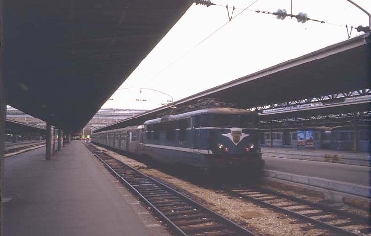 Die BB-16610 mit einem Nahverkehrszug am 17.08.1985 in Paris-Ost.