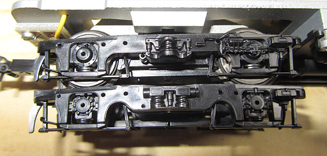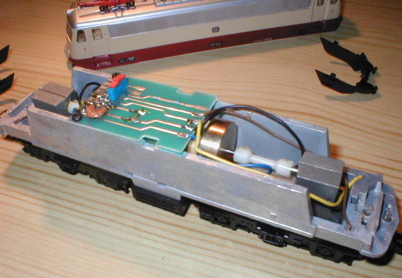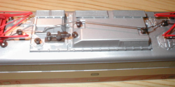 Technisch allerdings konnten mich die Loks nur zum Teil überzeugen. Die ersten Serien von Liliput, die ich habe, zeigen einen Spurtstart und kennen das Wort “Langsamfahrt” überhaupt nicht. Trotz kleiner Schwungmasse ist auch das Stehenbleiben nur als aprupt zu bezeichnen. Die späteren Herpa-Serien sind hier bedeutend besser auf der Schiene. Besonders ärgerlich waren für mich 2 Wechselstrommodelle der älteren Serien, die im Getriebe (nur ein angetriebenes Drehgestell) derartiges Spiel der Zahnräder hatten, dass sie trotz laufendem Motor einfach auf der Stelle stehen blieben. Dabei waren die Zahnräder nicht ausgeschlagen, es ist einfach nur zuviel Spiel auf den Wellen vorhanden oder die Zahnräder sind zu klein und zur Krankheit “Zinkpest” gibt es ja noch eine extra Unterseite. |