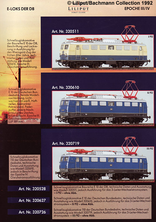 In der Liliput Collection 1992 waren neben der grünen E40, 140 und creme/blauen E10.12 wieder die blaue E10 mit der Betriebsnummer E10 101 und die Epoche IV 110 220-1 als Modelle zu sehen. Es ist im Katalog aber deutlich erkennbar, dass die Betriebsnummern als “Handmuster” aufgebracht waren. Während die E10 216 tatsächlich noch erschien, wurde die Epoche IV Lokomotive nie gefertigt.