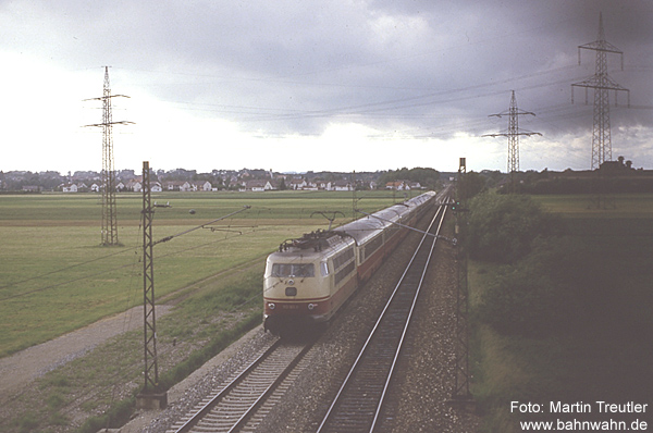 gelben Lackierung das Lufthansa Airport Express zwischen Stuttgart und Frankfurt unterwegs war. Dann die 103 220 mit der besonderen und besonders bunten Lackierung für die Touristik Züge der DBAG. Zuletzt noch die