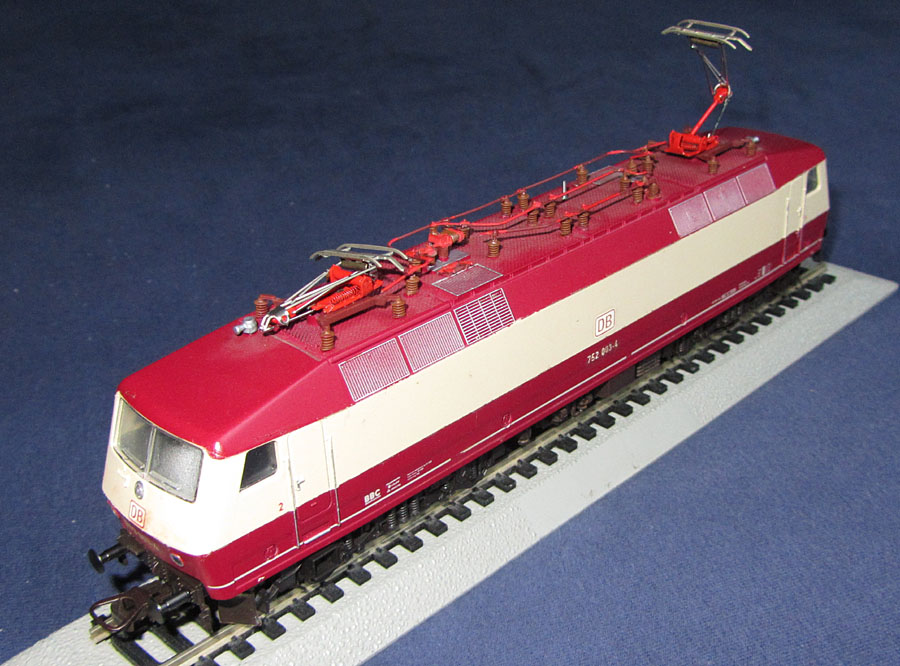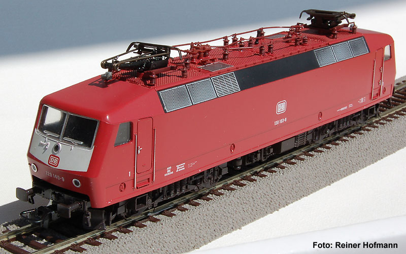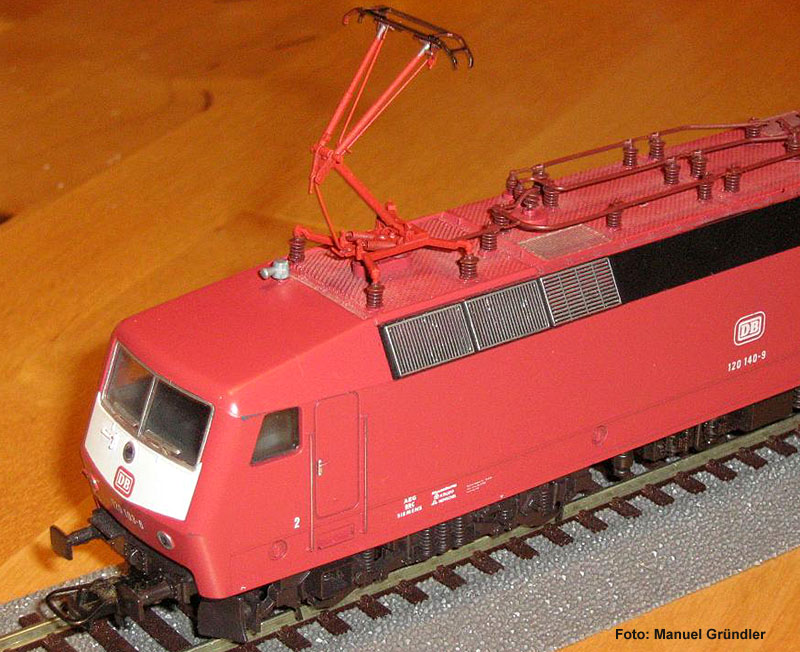 Ja und jetzt auch noch ein Schmankerl oder Kuriosum. Es ist eine orientrote 120 von Lima aufgetaucht, die an der Front die Betriebsnummer 120 140-9 trägt, also die normale Serienausführung, an den Seiten jedoch mit der Nummer 120 103-6 beschriftet ist. Die Computerprüfziffer ist dabei falsch (die “7” wäre richtig), genau wie auf dem Handmuster im Lima Katalog (nur da war die Nummer auch an der Front). Was es nicht alles gibt, aber es ist doch schön, wenn es im Modellbahnhobby immer wieder Überraschungen gibt. |