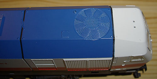 findet man ja immer ;-). Das Gehäuse der Lok ist aus Kunststoff und wurde in einem Teil hergestellt. Dabei wurden die diversen Seitenlüfter schön graviert und auch die Anzahl der Lamellen scheint fast exakt zu