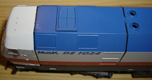 Unsauberkeiten sind bei den DB-Loks im Bereich der großen Seitenlüfter zu finden. Auch hatte sich wohl das eine oder andere Staubkorn in die Spritzkabine verirrt und wurde so für die Modellewigkeit konserviert.
