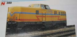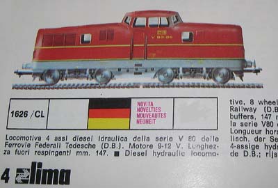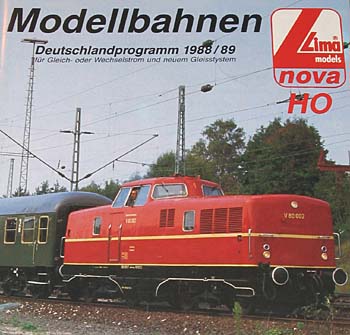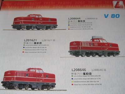 Im folgenden Katalog von 1989/90 war die Version der Hersfelder Kreisbahn bereits wieder verschwunden. Neu dazu gekommen war aber die V80-1 in der Farbgebung der italienischen Bari-Nord in Gleichstromausführung, die jedoch schon 1990 nicht mehr im Katalog war. Dafür erschien als Neuheit 1990 eine weitere italienische Version. Diesmal war es eine gelb lackierte V80 der Gleisbaufirma CEMES. Außerdem war als weitere Neuheit 1990 die V80 010 zu finden. Dieses Modell war mit dem Schalldämpferaufsatz ausgestattet worden, wie ihn die V80 einige Zeit getragen hatte. |
