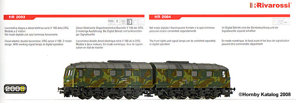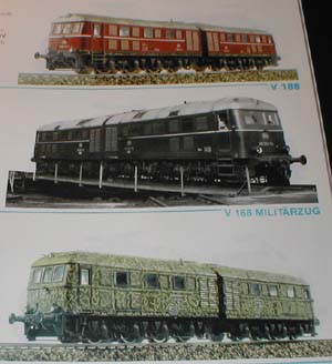 Ab 1983 verschwand die V188 in Tarnlackierung als Einzellok aus den Katalogen, blieb aber im Rahmen der Militärzugpackung weiterhin erhältlich. Die grüne V188 war dann ab 1985 Auslaufmodell, während die rote V188 002 bis 1989 erhältlich blieb. |