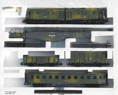 Im Lima Katalog von 2003 war diese wehrmachtsgraue Militärzugpackung noch enthalten (nur noch in Gleichstrom). Als Einzelmodelle fanden sich noch die grüne V188 001 mit den Dachaufsätzen, aber nur noch in Wechselstromausführung, sowie die V188 in Wintertarnversion “Walli” in Gleich- und Wechselstrom. Auch der Lima Katalog 2004 (ja, den gibt es wirklich) beinhaltet noch diese Modelle. Mit dem Niedergang der Firma Lima und der Übernahme durch Hornby wurde es still um die V188/288. |