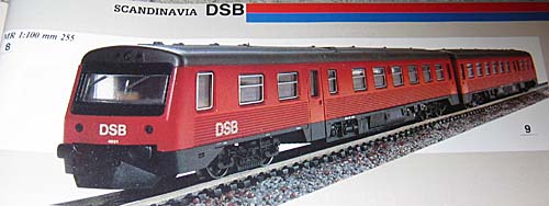 Fast gleichzeitig mit dem Modell des DB 628 erschien 1983 auch der rote DSB Triebwagen vom Typ MR im Limaprogramm. Wenn er auch zuerst nur wie eine reine Lackierungsvariante aussah, merkte man beim zweiten Blick sehr schnell, dass dies nicht zutraf. Zwar sind die Art des Modellaufbaus, sowie die Drehgestelle identisch, das war es aber auch schon. Lima hat dem MR ein völlig verändertes Gehäuse spendiert und auch die Rahmendetails sind unterschiedlich. Unter den Bestellnummern 201092L (Antriebsteil) und 201093 (Dummy) war der MR zu bekommen. In dieser Form blieb das Modell bis 1994 im Programm. Das einzige mir vorliegende Modell dieses Triebwagens zeigt zwei identische Gehäuseteile, die an der Front und auf der in Fahrtrichtung linken Seite mit 4051, bzw. MR 4051 beschriftet sind. Auf der in Fahrtrichtung rechten Seite steht aber MR 4052. Dies dürfte sicher eine fehlerhafte Bedruckung sein, aber vielleicht können mir andere MR-Besitzer mitteilen, wie bei ihren Modellen der ersten Serie die Beschriftung ausgeführt ist. Es wäre für mich von Interesse, ob es auch richtig bedruckte Modelle gab. |