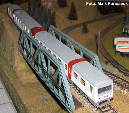 Ergänzend möchte ich hier auch noch einen Hinweis zu den neuen Modellen geben, der mir von einem Besitzer eines DSB MR/MRD übersandt wurde. Neben der durchaus gelungenen äußeren Gestaltung sind einige Dinge jedoch störend. So ist der neue Antrieb keine Offenbarung und könnte deutlich verbessert werden. Zudem sind die Kupplungen zwischen den beiden Wagen weiterhin völlig unzureichend. Während man an den Stirnseiten jeweils eine Kurzkupplungskinematik angebracht hatte, befand es Lima nicht für notwendig, gerade an den Rückseiten, an denen die Wagenhälften gekuppelt werden, auch solche anzubringen. Somit sind die Faltenbälge „meterweit” auseinander. Auch mit einer Kurzkupplung sieht das nach heutigen Anspüchen noch ungenügend aus. Für den nachträglichen Einbau einer Kurzkupplungskinematik fehlt zudem der Platz, da das Antriebsdrehgestell vorbildgetreu sehr weit am Wagenende plaziert ist. Auch die Spitzen- und Schlussbeleuchtung ist schwach und genügt heutigen Ansprüchen nicht. |