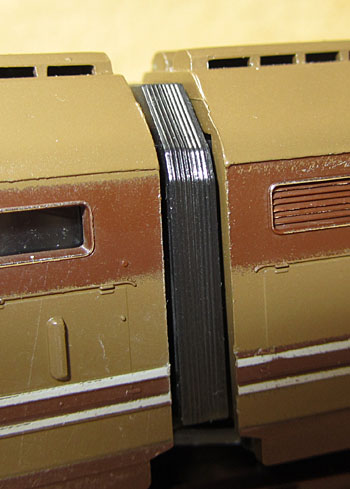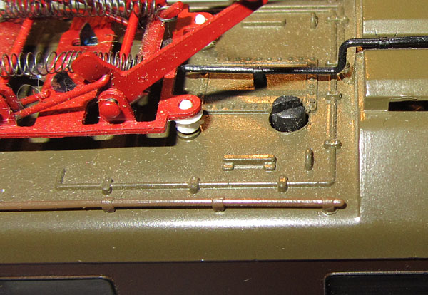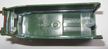 Bei der späteren Ausführung saß die Beleuchtung auf Kunststoffstützen, im nicht angetriebenen Teil war eine zusätzliche Metallplatte für das Gewicht eingesetzt. Genau diese Konstruktion wurde dann auch bei dem Modell der E656 unverändert verwendet.  |