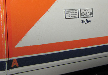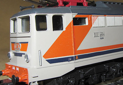 Bei der Beschriftung/Bedruckung fällt auf, dass diese nun etwas umfangreicher und feiner war und auch den Rahmen umfasste. Nur mit der Kennzeichnung des vorderen Führerstandes mit dem “A” hatte man bei der grün/grauen E646 153 gewisse Probleme. Dies wurde bei dem mir vorliegenden Modell dieser Lok nämlich einfach an jeder Seite und jeder Ecke aufgedruckt. Bei der E646 049 Navetta ist dies dann aber aufgefallen und diese trug zum ersten Mal das “A” auf beiden Seiten an der richtigen Stelle, also beidseitig am gleichen Gehäuseteil.  |