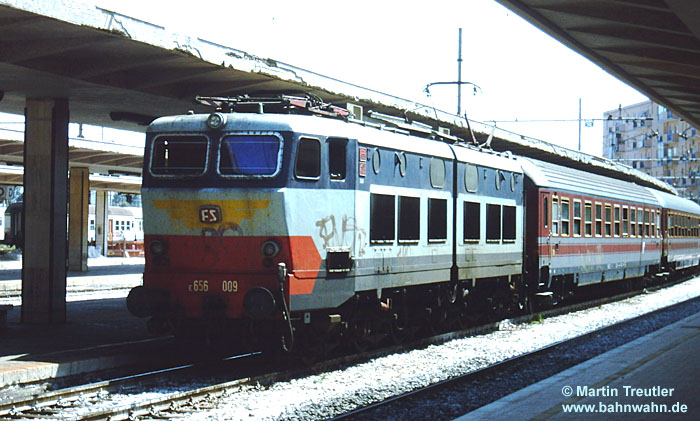Ab 1975 wurden die Lokomotiven der Baureihe E656 in mehreren Bauserien mit einer Gesamtzahl von über 400 Exemplaren abgeliefert. Die erste Bauserie umfasste die Lokomotiven E656 001 bis E656 104, die von 1975 bis 1978 gebaut wurden. Direkt daran schlossen sich zwei praktisch gleichzeitig beauftragte Bauserie mit den Lokomotiven E656 201 bis E656 251 von 1978 bis 1980, bzw. mit den Lokomotiven E656 252 bis E656 307 von 1977 bis 1980 an. Wie man hier schon sieht, erfolgte die Ablieferung nicht exakt in der Reihenfolge der vergebenen Betriebsnummern, sondern die Loks waren in Losen an die verschiedenen Herstellerkonsortien vergeben, die dann eben unterschiedlich ablieferten. So stammte zum Beispiel die E656 256 (Hersteller: Casertrane-Italtrafo) aus dem Jahr 1977, die in der Betriebsnummer niedrigere E656 250 (Hersteller Casaralta-Ansaldo) folgte erst 1980. |