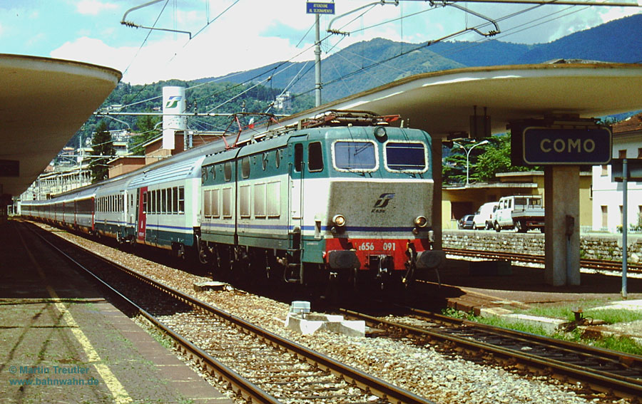 in der neuen XMPR Lackierung hat die E656 091 am 04.07.2003 einen kurzen Aufenthalt in Como, bevor es weiter in den Süden geht |