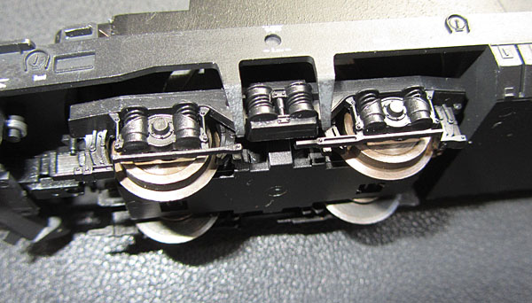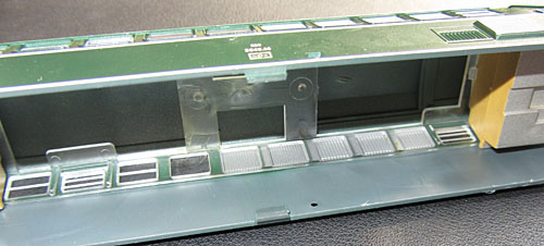 befindet sich exakt oberhalb des dunklen Rahmens. Dabei sind gleich 6 Rastnasen zu überwinden. Diese sitzen in den Auftritten der Führerstandstüren und in den Tankstutzen. Prinzipiell sorgt diese Halterung dafür, dass das