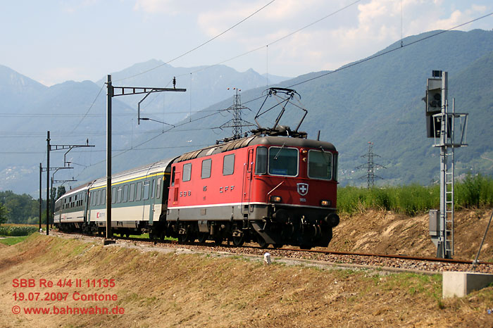 Zuerst grün, dann rot, dazu noch rot/blau von SBB Cargo, aber es gab auch hier ein paar Sonderlinge. So wurden passend für die Swiss Express Züge 8 Lokomotiven in orange/grau/orange lackiert. Dabei handelte es sich ausschließlich um Lokomotiven der ersten Serie. Auch TEE-Lack gab es. So erstrahlten weitere 9 Lokomotiven aus der 2. Serie in beige/rot. Nicht zu vergessen auch noch die so genannte Bourret-Lok (ebenfalls eine Lokomotive der 2. Serie), sowie einige wenige Werbeträger. Noch heute ist die Re 4/4 II in der Schweiz ein Rückhalt des Bahnverkehrs. Sie ist landesweit anzutreffen und in Verbindung mit einer Re 6/6 bildet sie eine fast schon legendäre “Re 10/10” Kombination (in der Regel mit Lokomotiven der 2. Serie), die jeder Bahnwahnsinnige kennt. Sicher wird die Re 4/4 II noch viele Jahre den Eisenbahnfreunden an der Strecke ein freundliches “Grüezi” zurufen. |