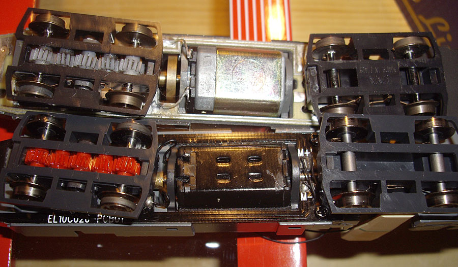*** Weiterhin die komplizierte Gehäuseabnahme durch Herausziehen der Lampeneinsätze *** Stromabnahme weiterhin von 2 Drehgestellen, jetzt aber vom mittleren und hinteren