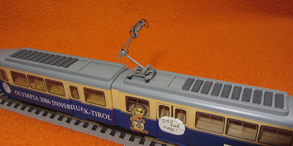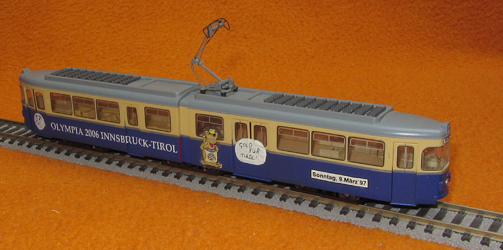 Auflage 50 Stück. Als Basis diente der Innsbrucker GT6 mit der Bestellnummer 208494-2. Werbung für die Olympia 2006 in Innsbruck. Ob das ganze vorbildgetreu ist, kann ich derzeit noch nicht sagen, da sich 2006