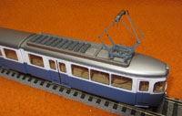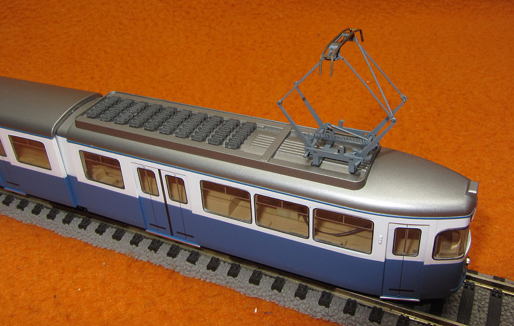 | Dachausrüstung: | Scherenstromabnehmer auf A-Teil über dem Führerstand. A-Teil mit 10 Bremswiderständen, B-Teil ohne.