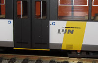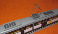 Scherenstromabnehmer auf A-Teil, zur Wagenmitte versetzt. A-Teil mit 6 Bremswiderständen, B-Teil mit 5 Bremswiderständen.