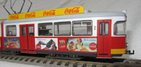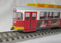 verschiedenen alten Coca-Cola Werbungen. Wurde auch als “Sommertram” bezeichnet, auch auf der Verpackung.  Das Modell wurde in der passenden Verpackung mit Coca-Cola Bedruckung ausgeliefert.Wenn auch ohne