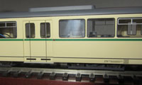 Scherenstromabnehmer auf A-Teil, zur Wagenmitte versetzt. A-Teil mit 10 Bremswiderständen, B-Teil mit 5 Bremswiderständen.