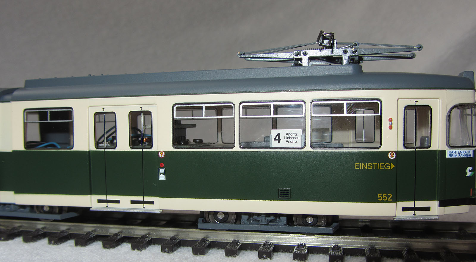 Digitaldecoder ausgestattet, der über Bluetooth mit einer App steuerbar ist. Als Neuheit 2023 angekündigt, 12/2023 erschienen. Das Modell stellt mit der Nummer 552 einen der GT8 dar, die Graz im
