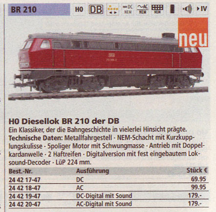 Gleichzeitig mit der 210 der DB erschien im November 2006 auch die Ausführung der