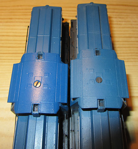 nicht gefunden. Es ging dann mit Einsetzen der Radsätze, teilweises Aufschieben der Blende, aber nur so weit, dass man noch die Schleiferbleche seitlich in die Halterung einschieben konnte und dann Blende ganz drauf. Wer es