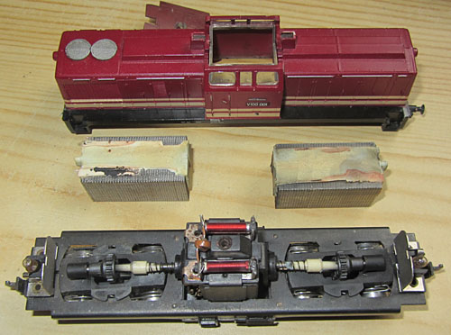 kleine Metallbleche auf die Radlaufflächen drücken. Gerade dort sammelt sich aber sehr schnell Schmutz aller Art an, der dann die Stromabnahme verschlechtert. Mit einem kleinen Pinsel kann man da zwischen Rahmen und
