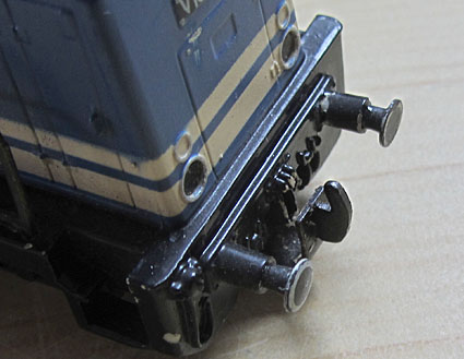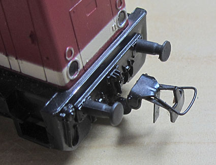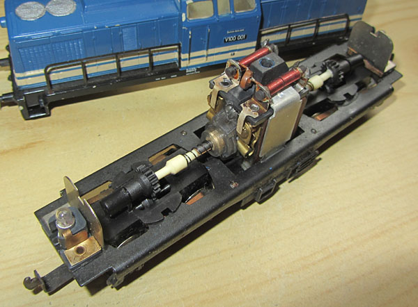 die bronzefarbenen Federbleche zur Stromabnahme, zu denen wir gleich kommen.