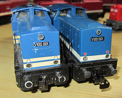 Auch hier gab es verschiedene Ausführungen. So wurde beim ersten Modell, der V100 001 in rot
