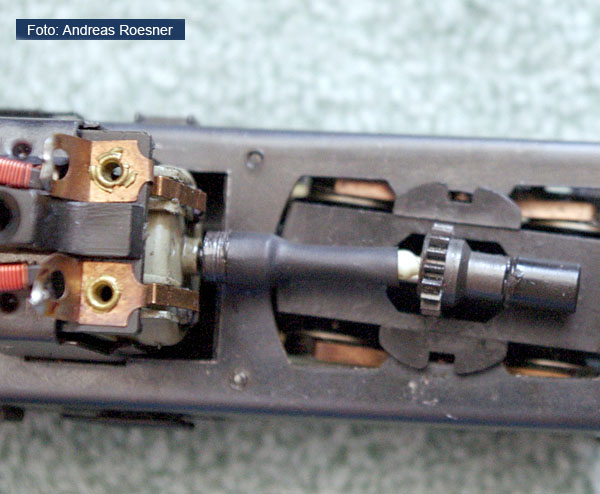 Andreas Roesner hat den Antrieb einer Piko 110 dahingehend verändert, dass er statt auf die Kardanwellen auf einen Schrumpfschlauch gesetzt hat. Hier seine Beschreibung und seine Bilder dazu. |