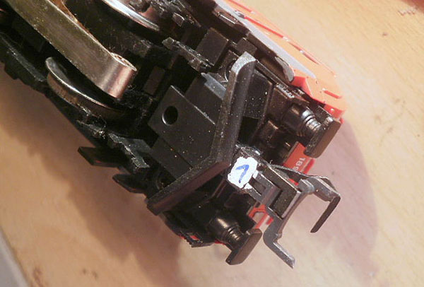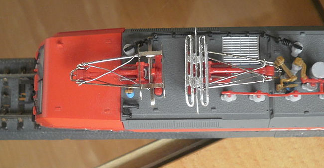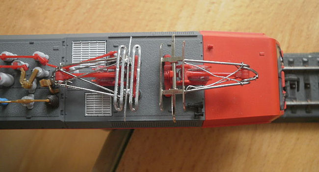Euro kostet, habe ich mich für's Basteln entschieden. Zuerst habe ich das Schleifstück des Stromabnehmers über dem Führerstand 1 gekürzt und zurechtgebogen. Schon ist er ein Stromabnehmer für die Schweiz.