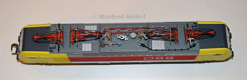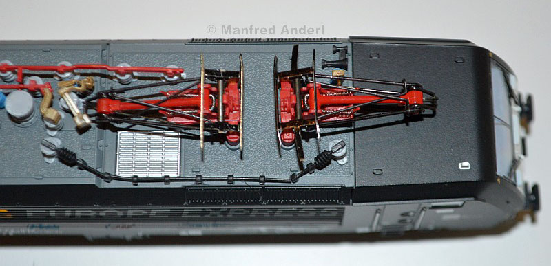 die Verwendung eines “Einheitsstromabnehmers” an allen Dachpositionen. Beim Vorbild sind die unterschiedlichen Sromabnehmer ja gerade die Stärke der Lokomotive, die so in verschiedenen Konfigurationen unter
