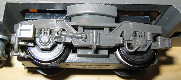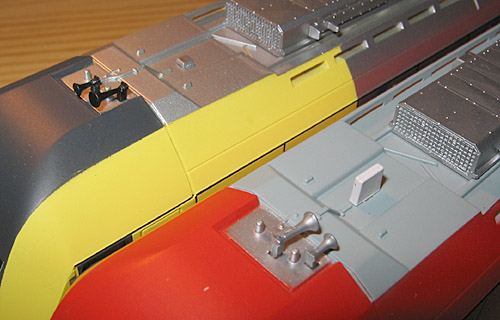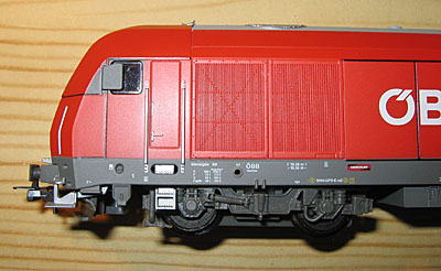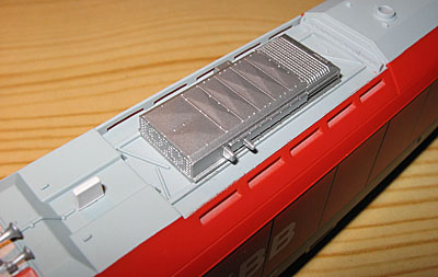 Gehäuse ganz leicht nach oben abnehmen. Die Trittstufen oberhalb der Puffer sind übrigens nur lose eingelegte Kunststoffteile, die, sollte man jetzt das Fahrgestell auf den Kopf drehen, herausfallen. Also aufpassen
