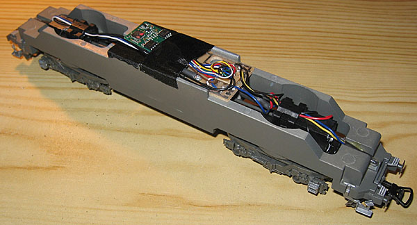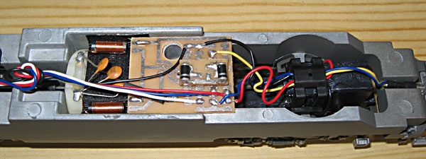vorhanden. Bei der Wechselstromversion hat der Dekoder seinen Platz oberhalb des Motors gefunden. Er ist jetzt aber stabiler mit Klebebändern befestigt wie früher, als man eher von einer fliegenden Verdrahtung