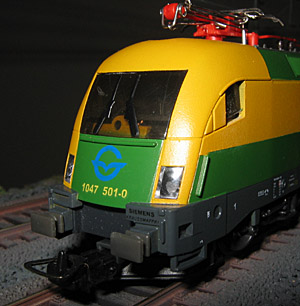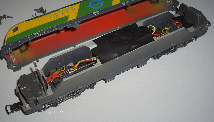 der entsprechende Taurus von Piko verwendet, sondern eine Neulackierung mit Neubeschriftung durchgeführt. Nach Abheben des Gehäuses sieht man, dass die Basis ein DBAG oder ÖBB Taurus gewesen sein muss, da von innen