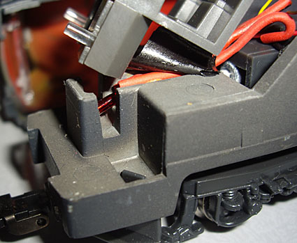 das rot durchgefärbte Gehäuse zu sehen ist. Die Lackierung ist weitgehend sauber ausgeführt. Das Grün ist ein klein wenig dunkler als das von Piko verwendete, das Gelb dagegen ist bedeutend wärmer im Farbton als das