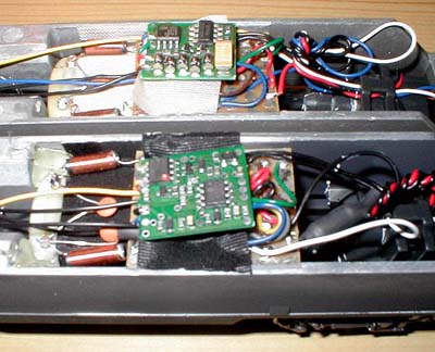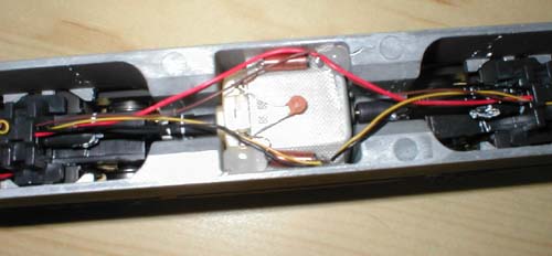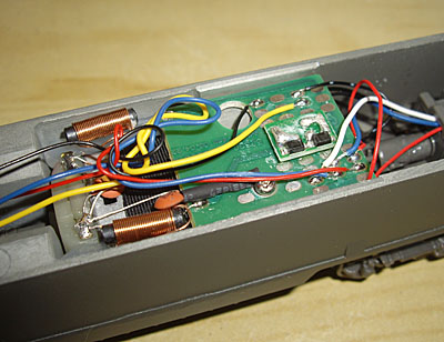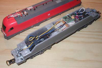 Bei der Wechselstromversion ist ein Digitalrelais fest eingelötet, welches auch einen Analogbetrieb zulässt, aber keine Sonderfunktionen anbietet. Dieses liegt durch ein Isolierband getrennt auf dem Motor. Inzwischen wurde ein verbessertes Relais eingebaut, was auch zumindest den fahrtrichtungsabhängigen Lichtwechsel der Stirnlampen zulässt. Die Gleichstromversion wurde bei den ersten Auflagen (Dispolok, ÖBB 1016 und DBAG 182) mit einer Art fliegenden Verdrahtung im Inneren ausgeführt. Inzwischen findet man aber auch hier eine Digitalschnittstelle, um einen Decoder einstecken zu können. |
