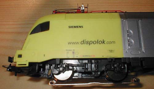 Die Dachausrüstung ist zwar einfach gestaltet, aber vollständig. Ein wenig Farbe, um den Plastikglanz der Leitungen zu dämpfen, kann hier Wunder wirken. Auch die Stromabnehmer sind nur vereinfacht wiedergegeben und aufgrund ihres Plastikholms nicht funktionsfähig. Ein perfekteres Bild erhält man nur mit Austauschteilen, aber zwei vorbildgerechte Pantos sind schon wieder in einer Preislage, wo man über den Kauf eines weiteren Piko Taurus nachdenken kann. Daher gilt auch hier, dass mit etwas Farbe viel zu erreichen ist. |