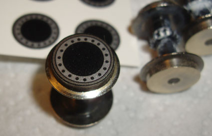 dann entfettet werden. Das erhöht die Haftung der Aufkleber. Wichtig ist es, die Aufkleber exakt mittig zu zentrieren, damit man dann im Fahrbetrieb nicht das Gefühl bekommt, dass die Räder eiern würde. Mit ein