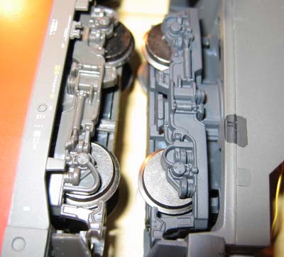 Die Drehgestellblenden wirken durch das glänzende Plastik sehr spielzeughaft. Auch
