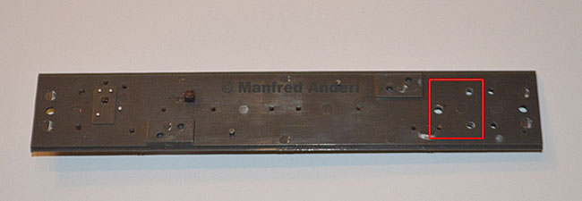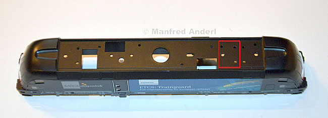 Nach Abnahme des Dachaufbaus sieht man, dass das Gehäuse schon über Bohrungen für einen drittten Stromabnehmer verfügt.