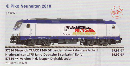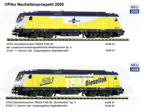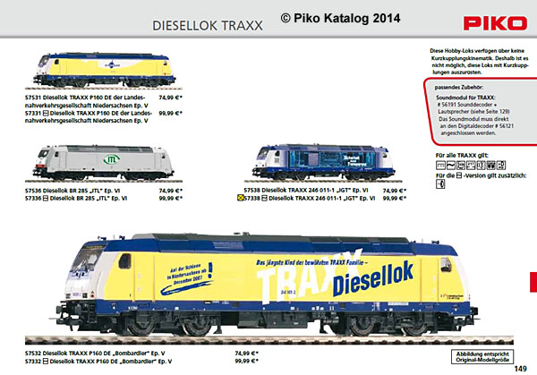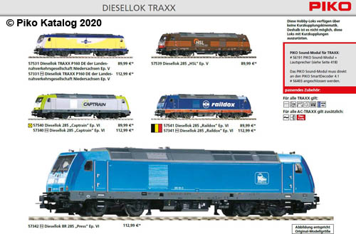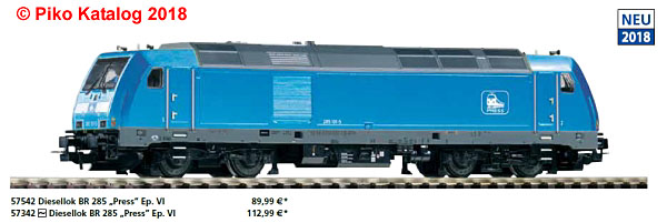 Es gab keine Neuheiten im Prospekt von 2019, also können wir gleich im Hauptkatalog nachschlagen, wie sich das Programm verändert hat. Die einzige Veränderung zum Vorjahr war nur die, dass die Press 285 in DC (57542) nicht mehr im Katalog enthalten war. |