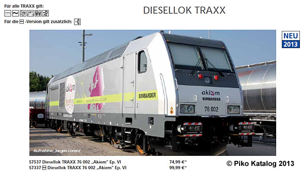 Das Katalogprogramm bestand 2016 neben der angekündigten “Captrain” aus der “HSL”, der “Metronom”, der “TRAXX Diesellok (AC als Auslauf) und der “IGT (nur noch in DC und das als Auslauf). |
