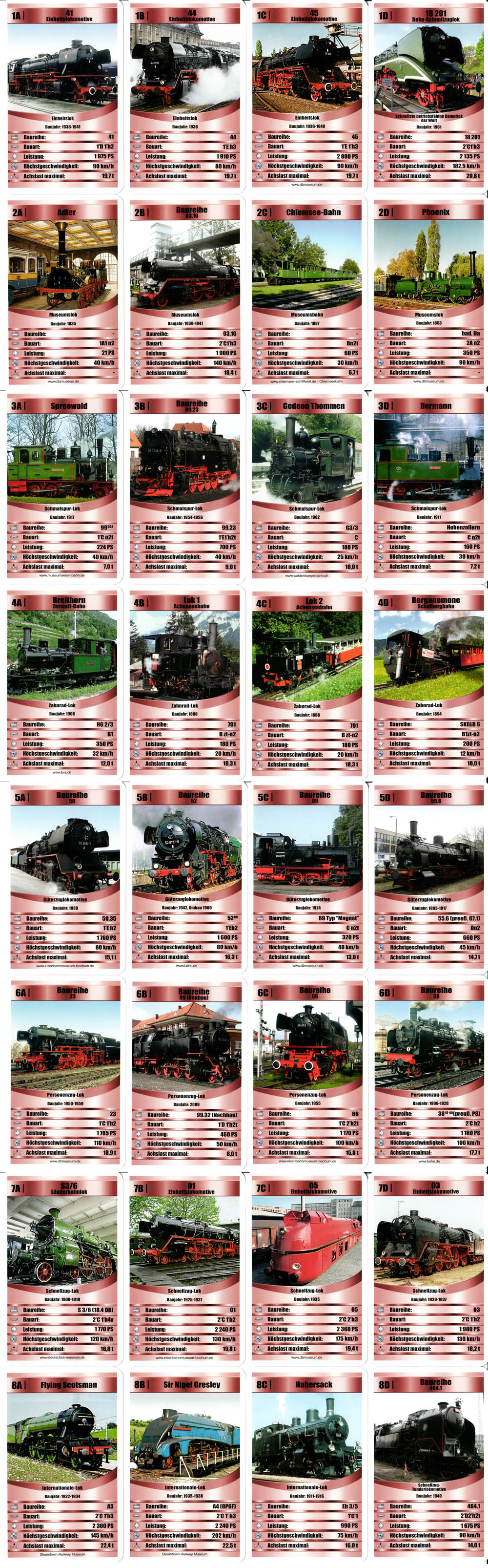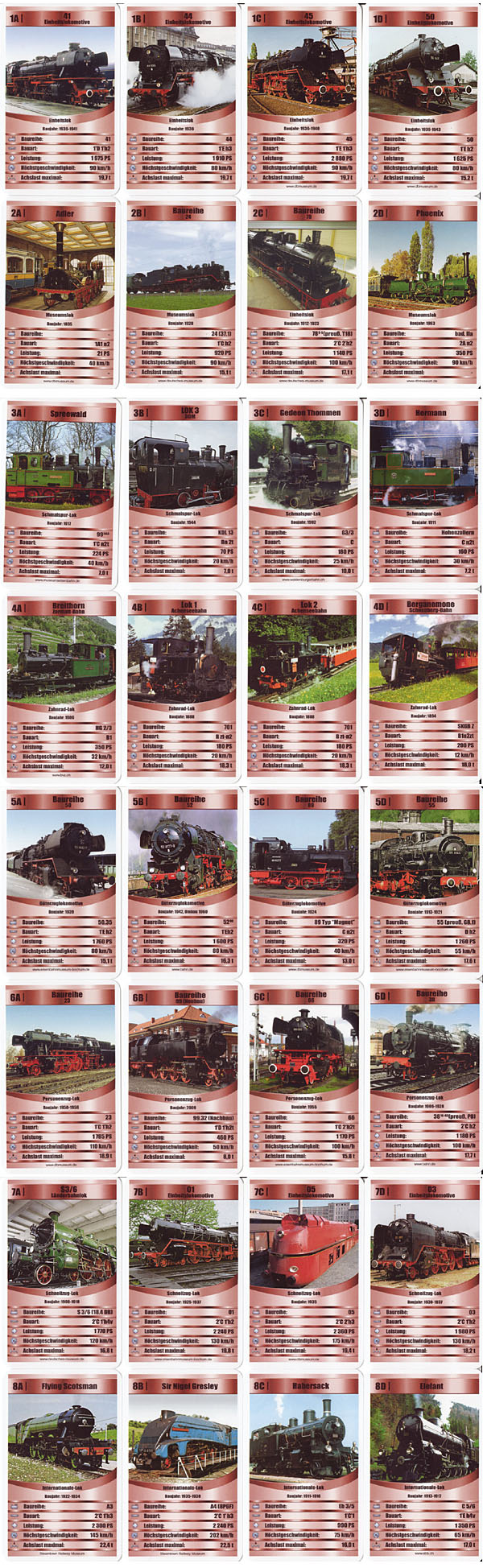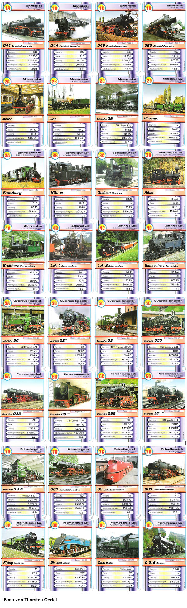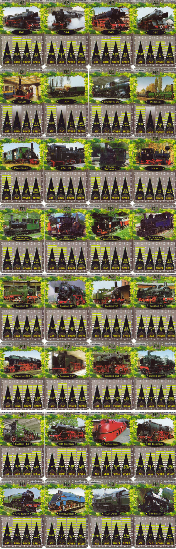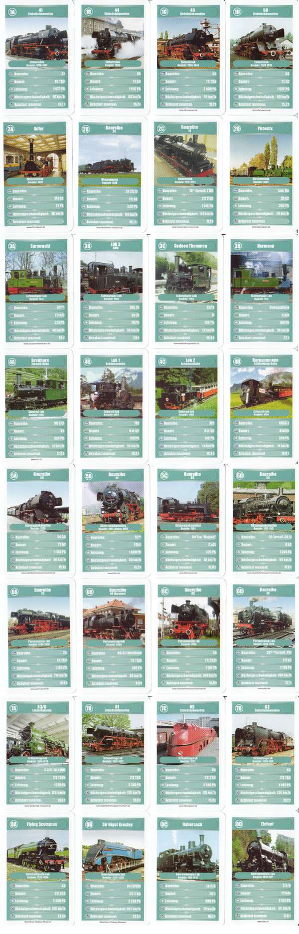 Zum Vorjahresquartett “Dampfloks gleiches Design, nur 2 Karten geändert (3D und 8C).